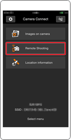 - In Camera Connect on the smartphone, choose [Remote shooting].