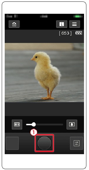 Once the camera is ready for remote shooting, a live image from the camera will be displayed on the smartphone. At this time, a message is displayed on the camera, and all operations except pressing the power button are disabled.
