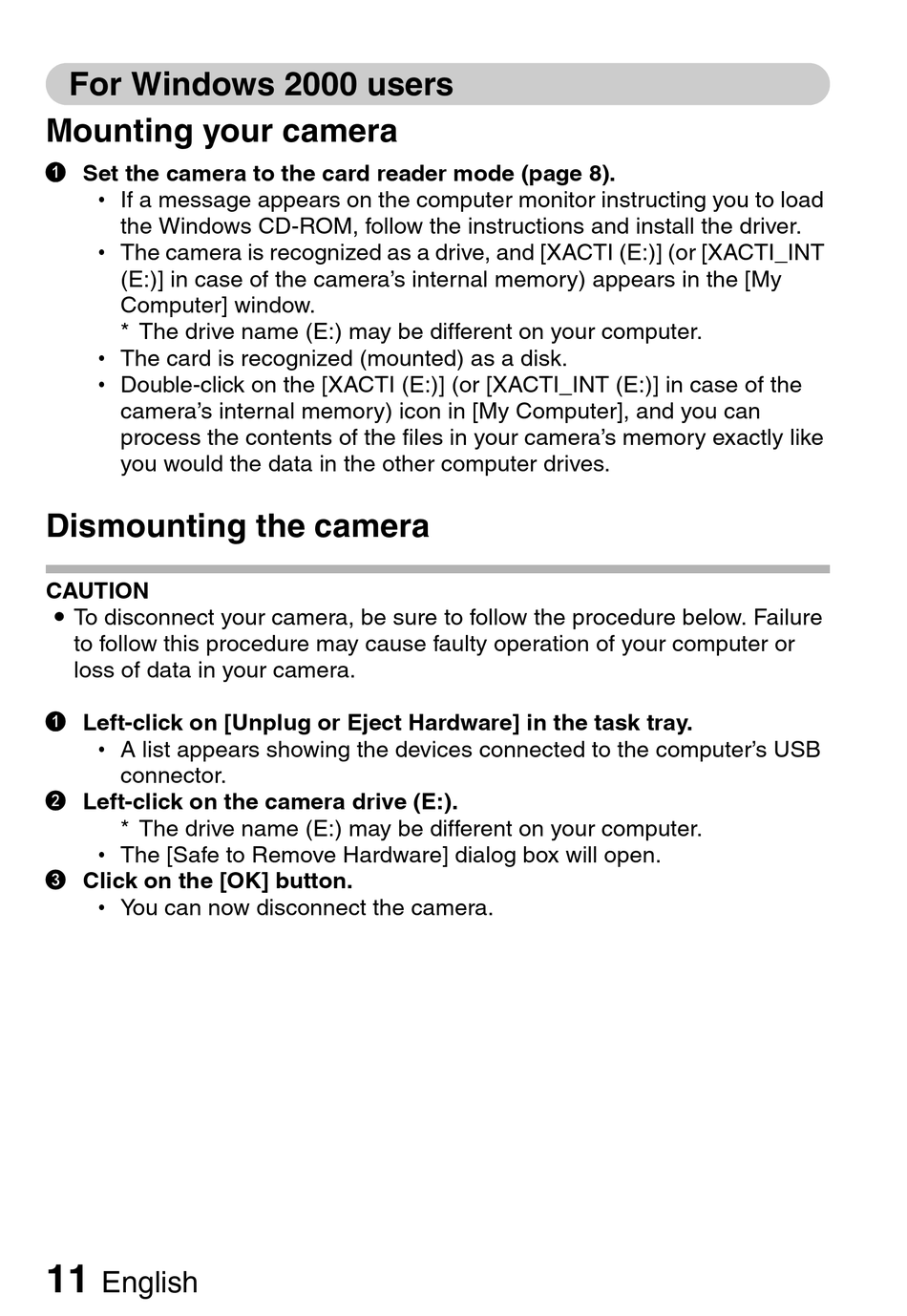 h The camera is recognized as a drive, and [XACTI (E:)] (or [XACTI_INT