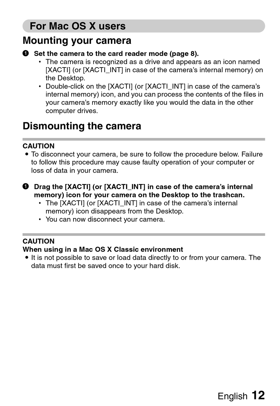 When using in a Mac OS X Classic environment