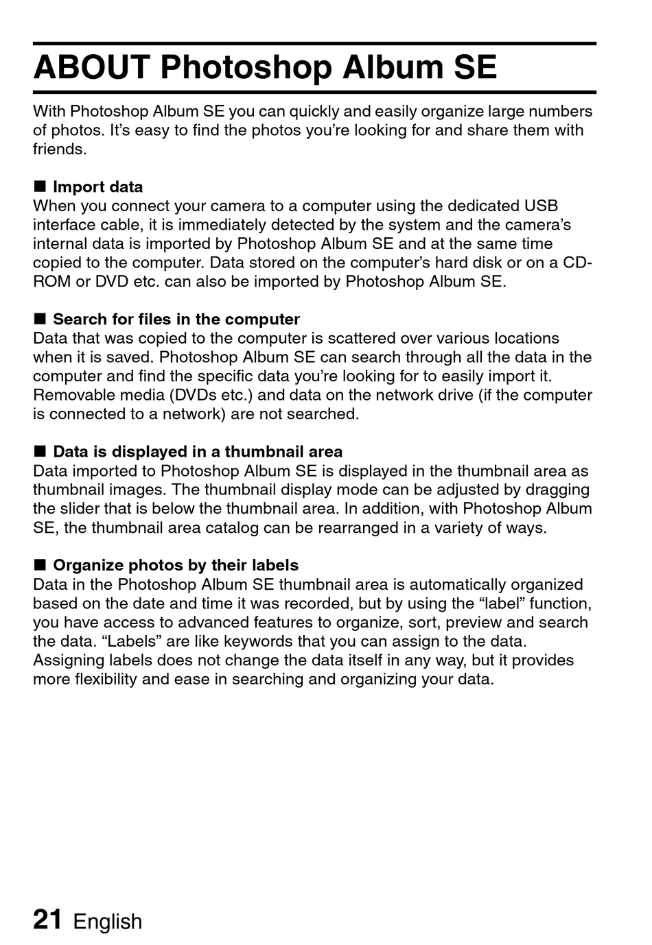 With Photoshop Album SE you can quickly and easily organize large numbers