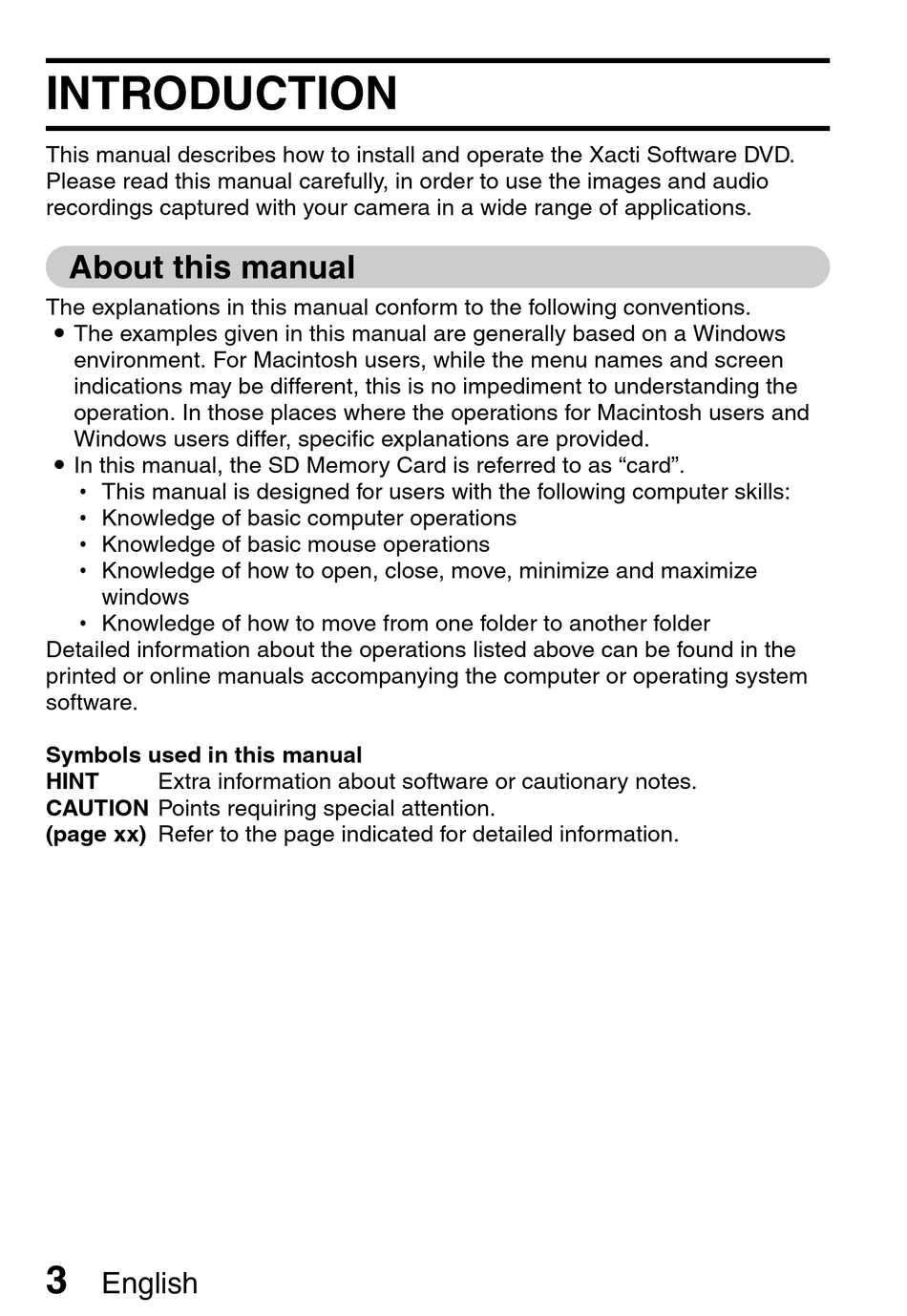 This manual describes how to install and operate the Xacti Software DVD.