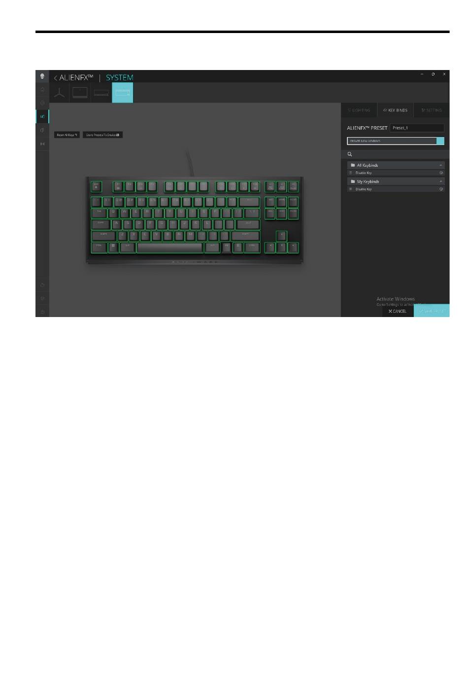 2. Under ALIENFX PRESET in SYSTEM, select KEY BINDS from the Top Right
