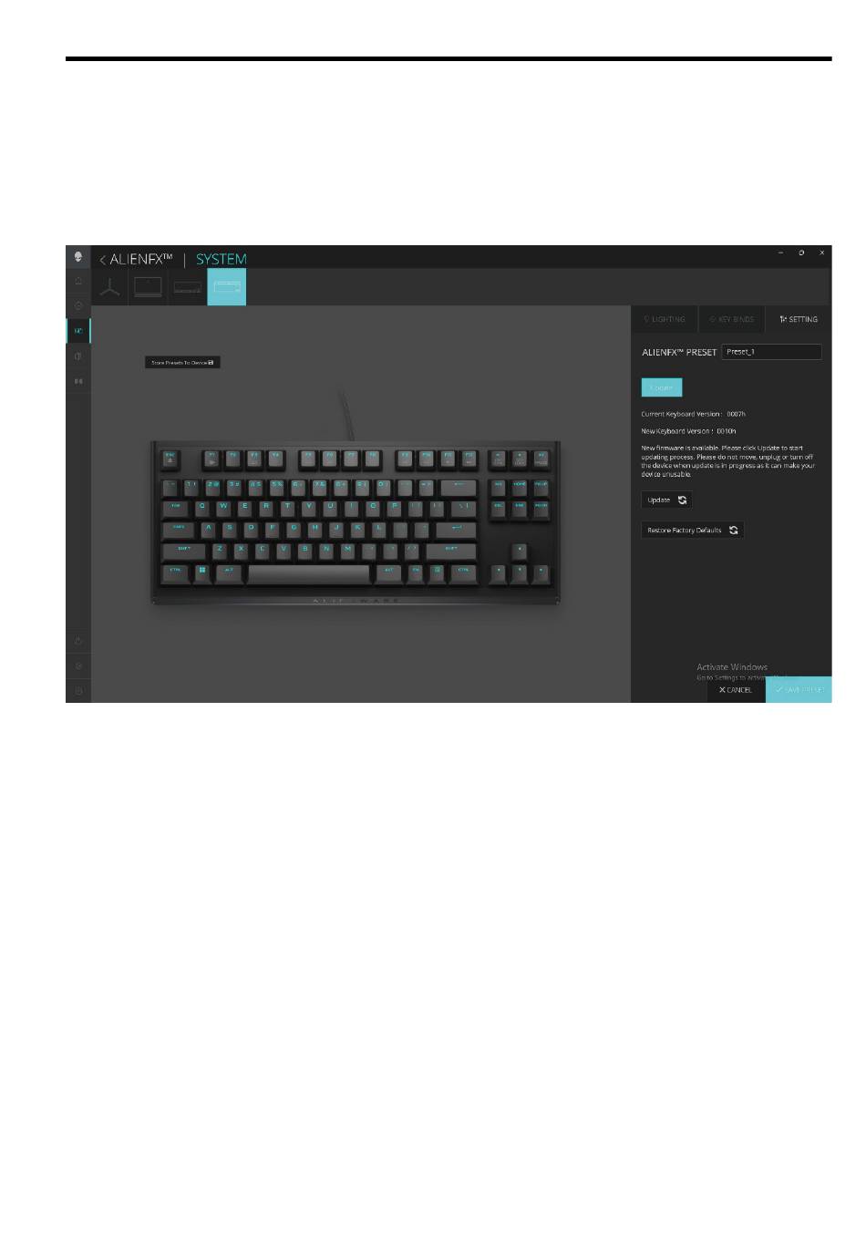 NOTE: Reset Factory Defaults feature will reset all the keyboard settings