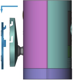 Guide the grooves in the base onto the hooks on the bracket. Slide Stick Up Cam down to secure it to the wall.