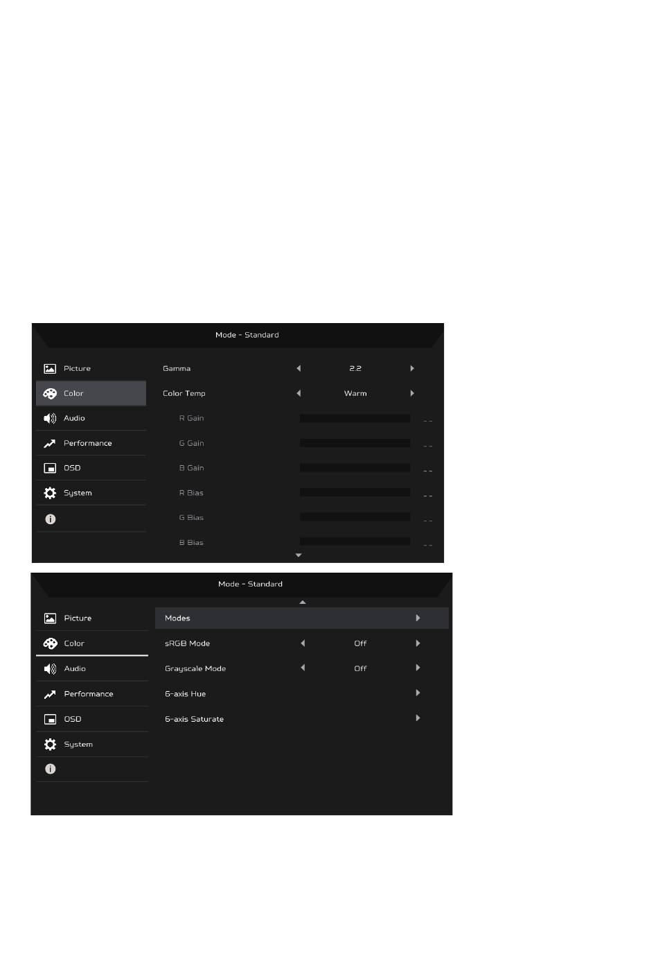 1. Gamma mode allows you to adjust the luminance tone. The default