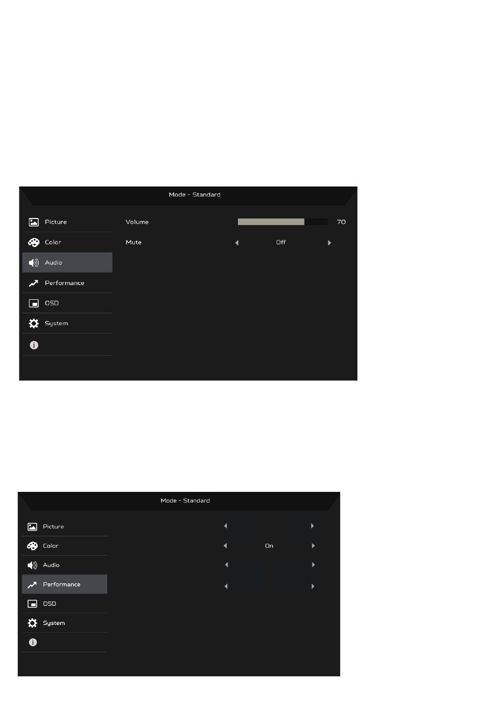2. Mute: Select On or Off.