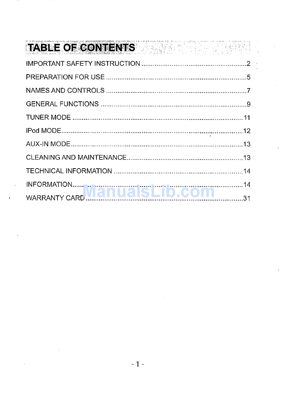 Table Of Contents - Sanyo Dmp P1 Instruction Manual
