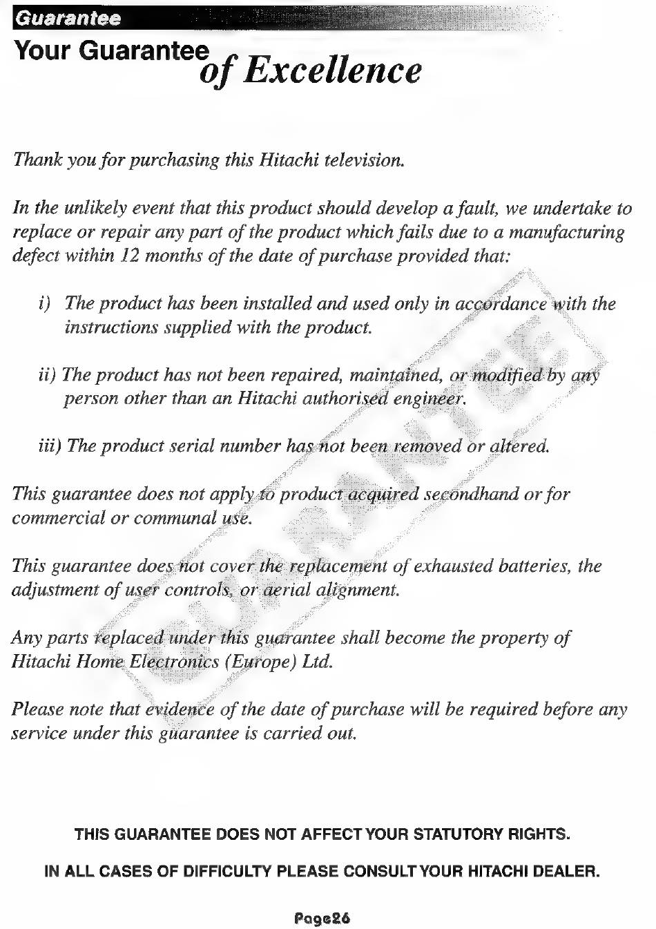 Thank you for purchasing this Hitachi television.