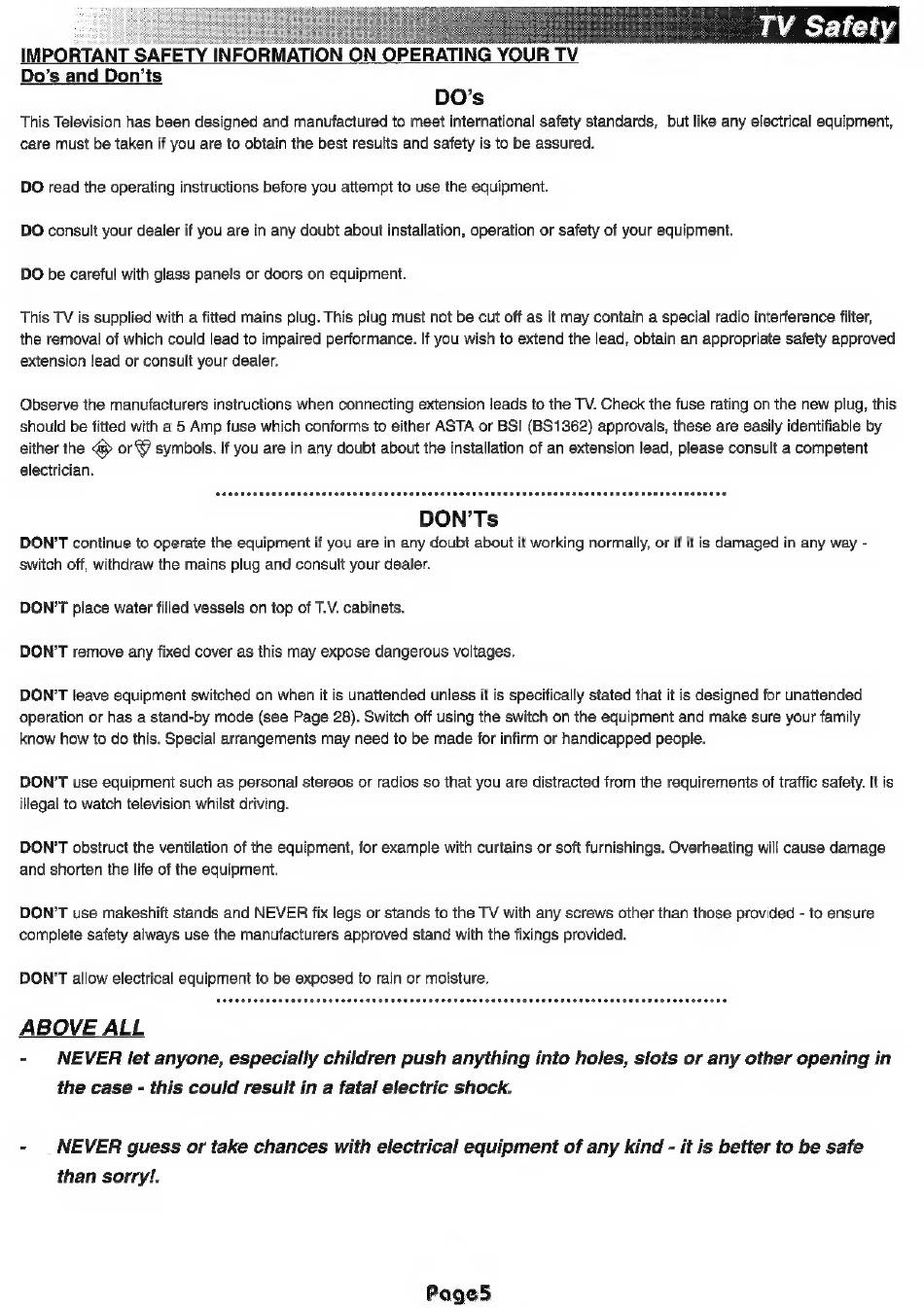 IMPORTANT. SAFETY 'INFORMATION ON OPERATING YOUR TV
