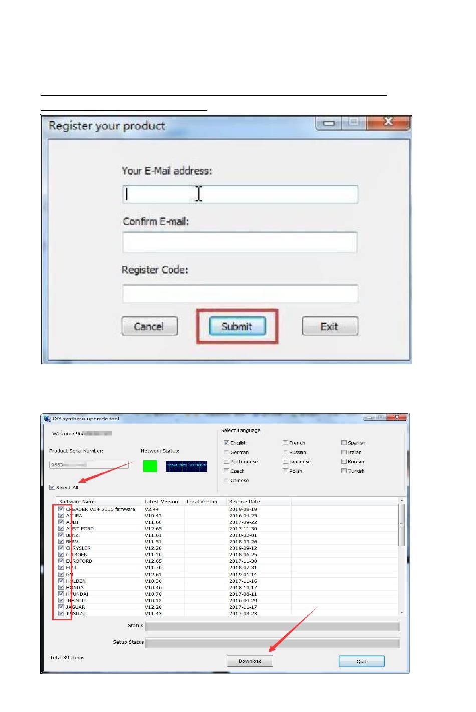 Step 7: Hit [Device Upgrade] and move to the register page, type your email