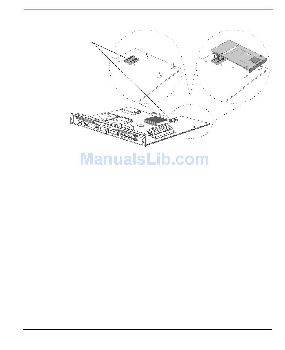 5. Position the male PMC connectors on the card over the female PMC