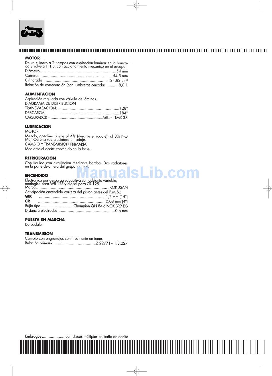 Dimensiones ....................80/100-21" (CR); 90/90-21" (WR)