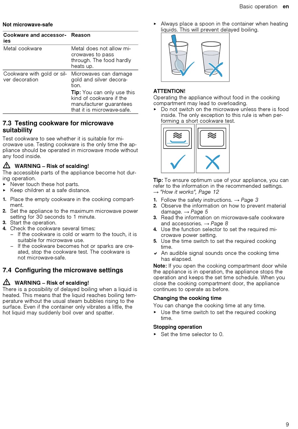 7.3 Testing cookware for microwave