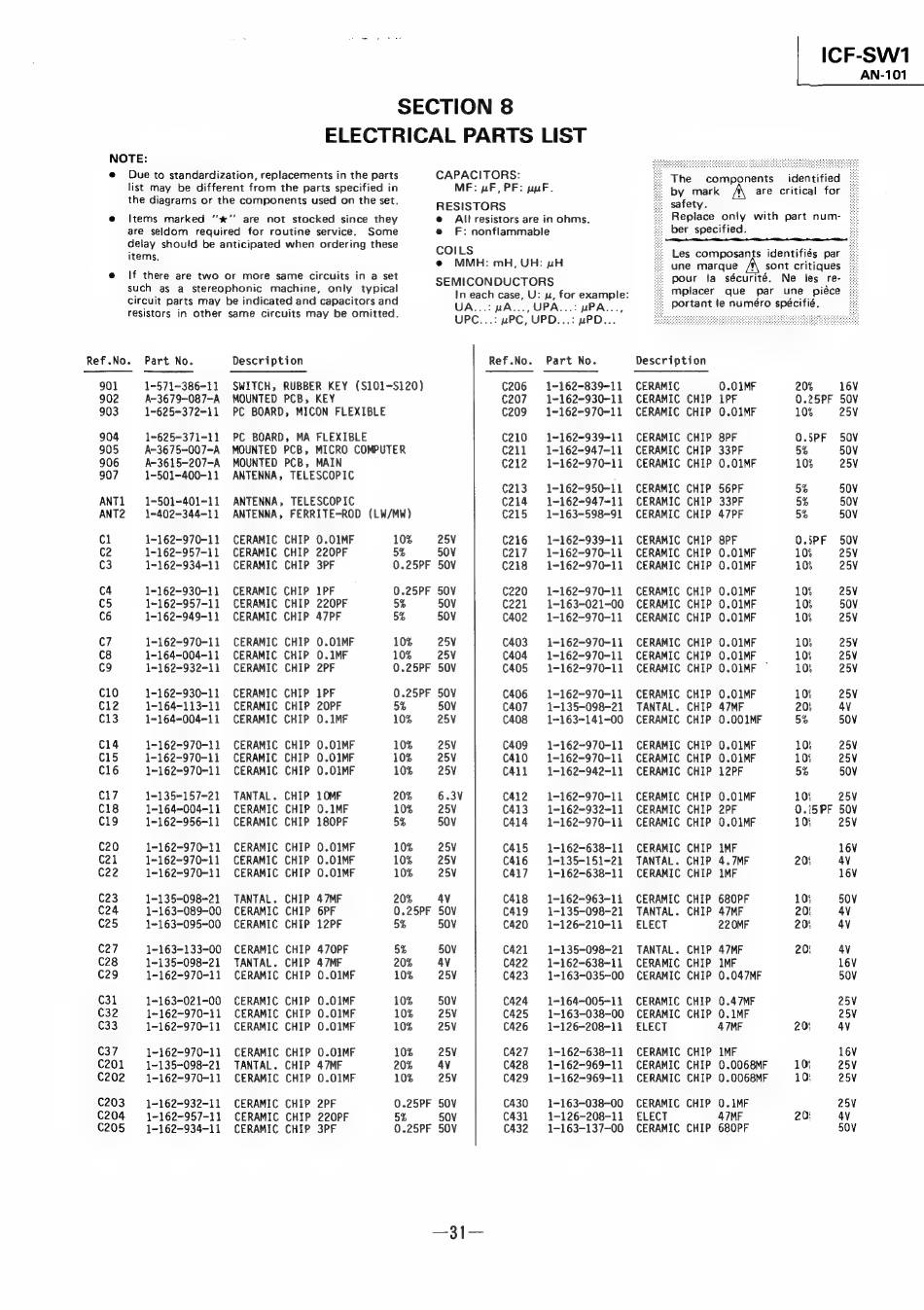 ELECTRICAL PARTS LIST