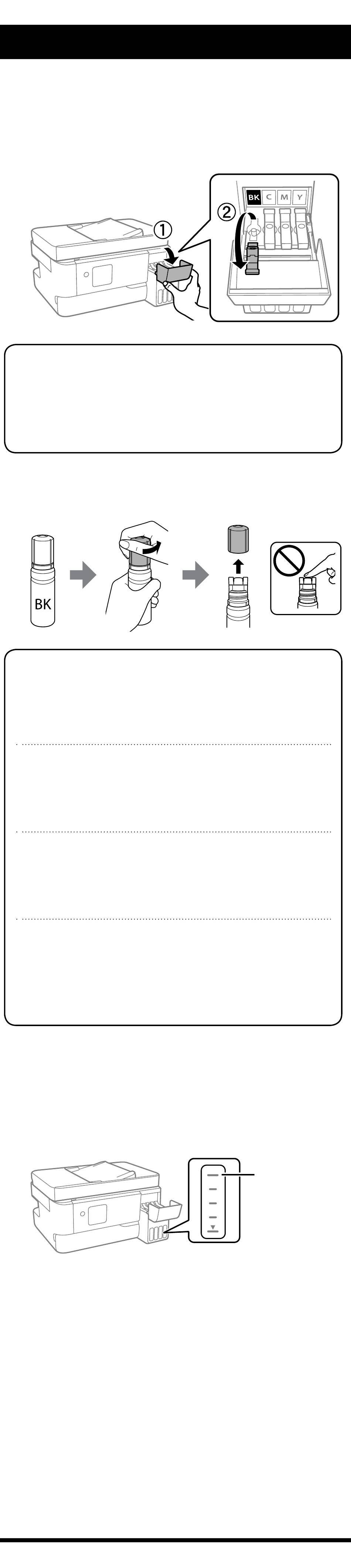 O Lepaskan tutup dalam posisi botol tegak agar tinta tidak bocor.
