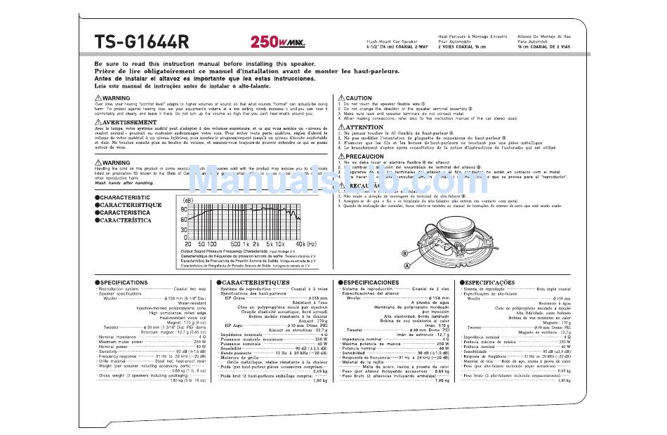 Car Speakers Pioneer TS-G1644R Instruction Manual