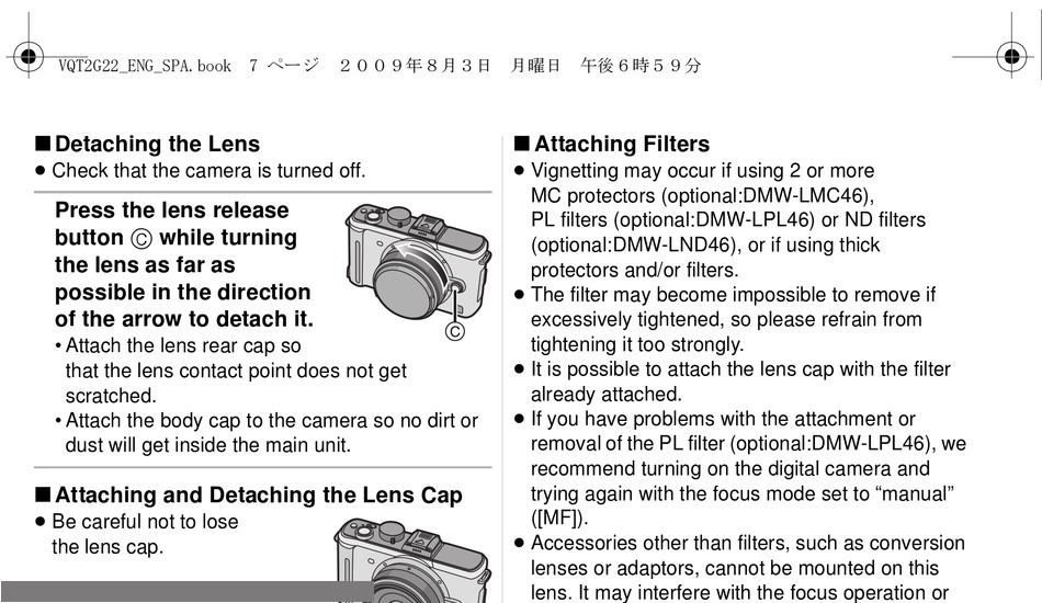 PL filters (optional:DMW-LPL46) or ND filters