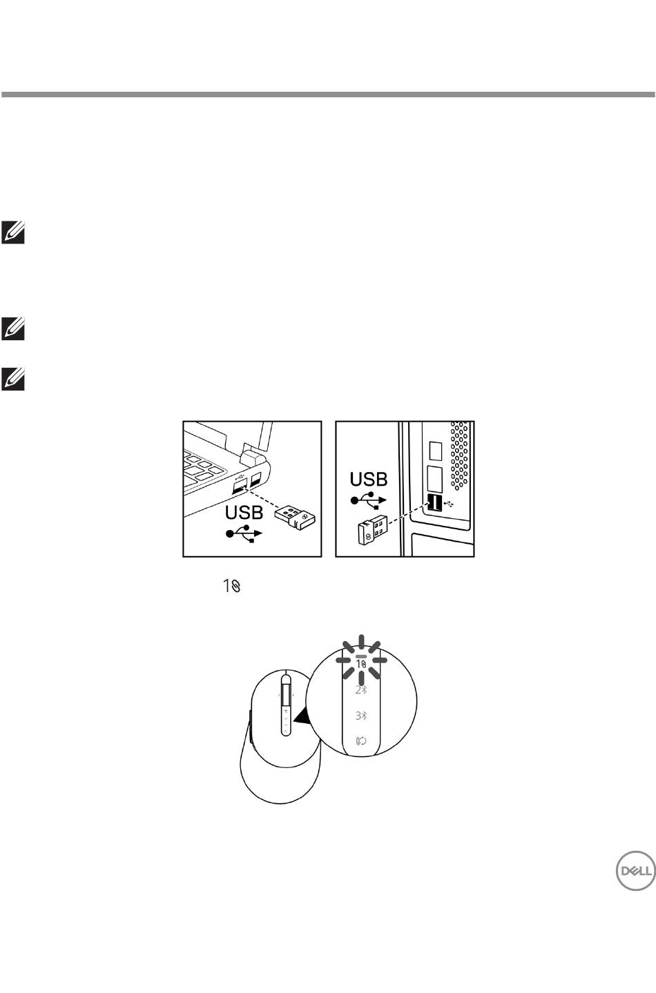 Your Dell wireless mouse can be paired with devices using either the USB receiver or Bluetooth.