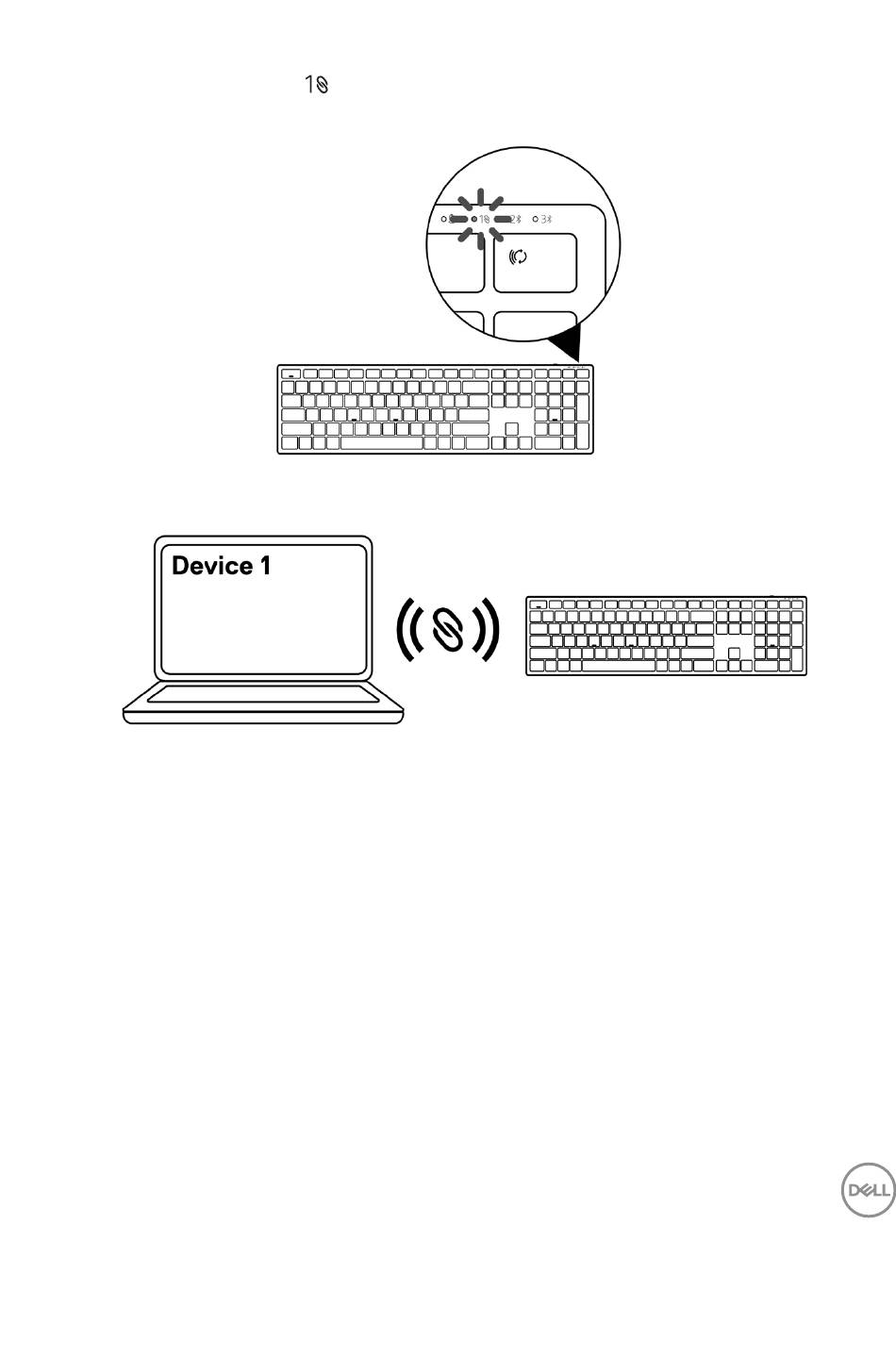 2 The connection-mode light ( ) on the wireless keyboard is set to Dell Universal Pairing