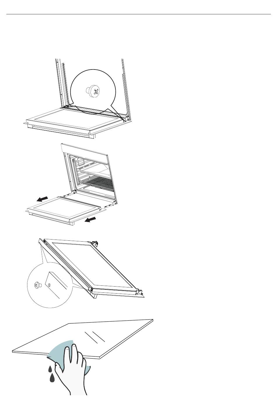 It is advisable to clean the glass window with an absorbent kitchen towel after every use of the oven . To