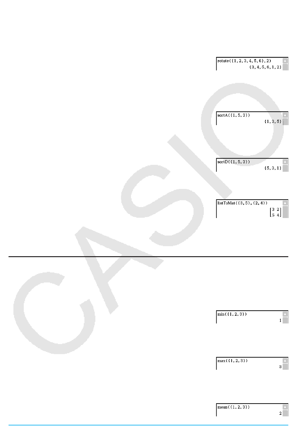 The [List][Statistics] and [List][Calculation] submenus contain commands related to list calculations.