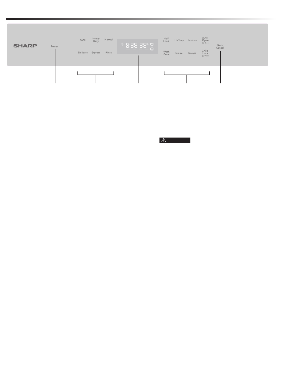 Press this button to turn on or turn off the dishwasher.