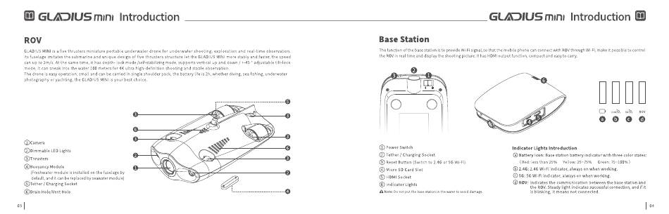The function of the base station is to provide Wi-Fi signal,so that the mobile phone can connect with ROVthrough Wi-Fi, make it possible to control