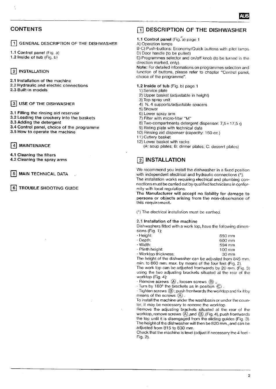 I .1 Controt panel (Fig. a) page I