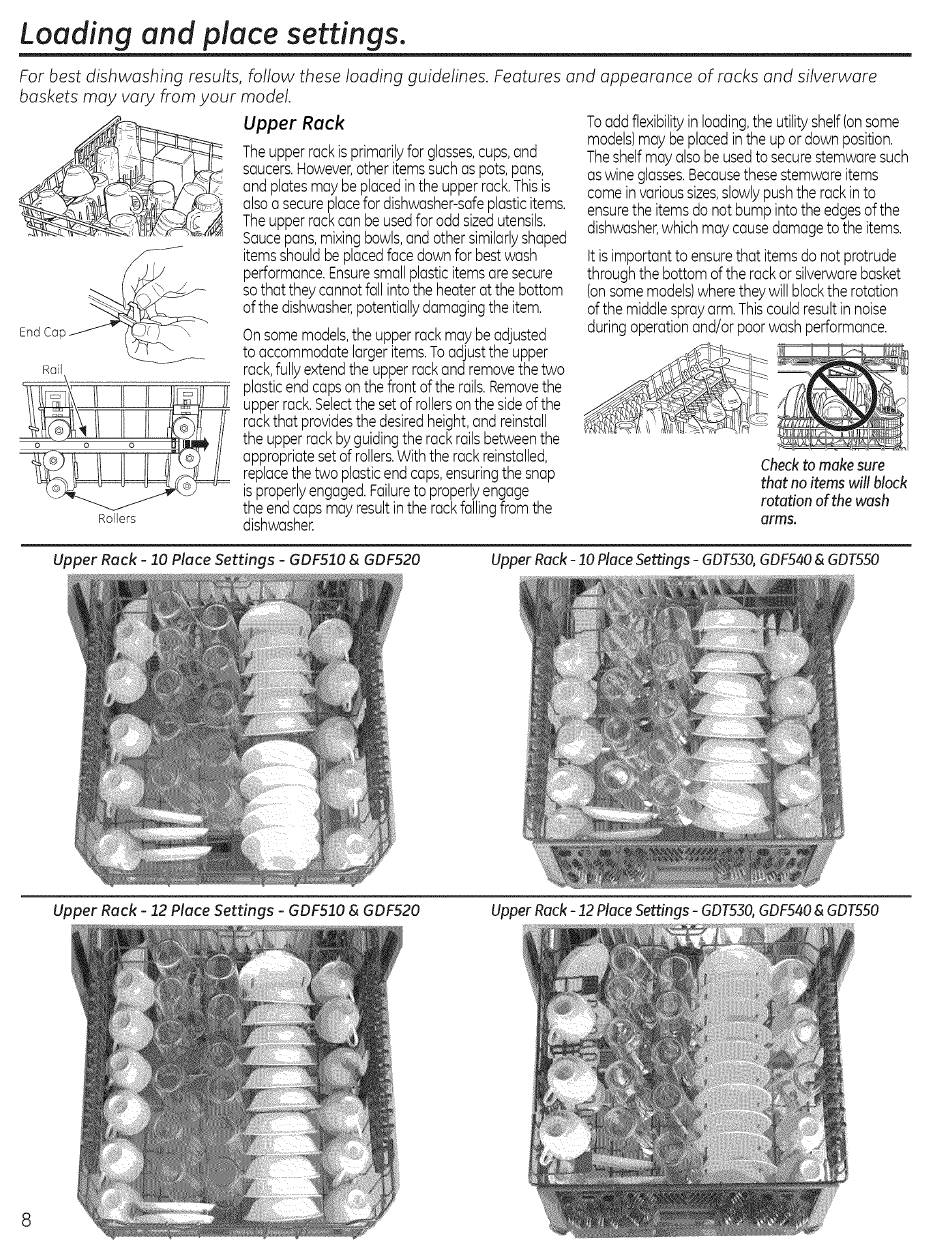 Upper Rack - 12 Place Settings - GDT530, GDF540 & GDT550