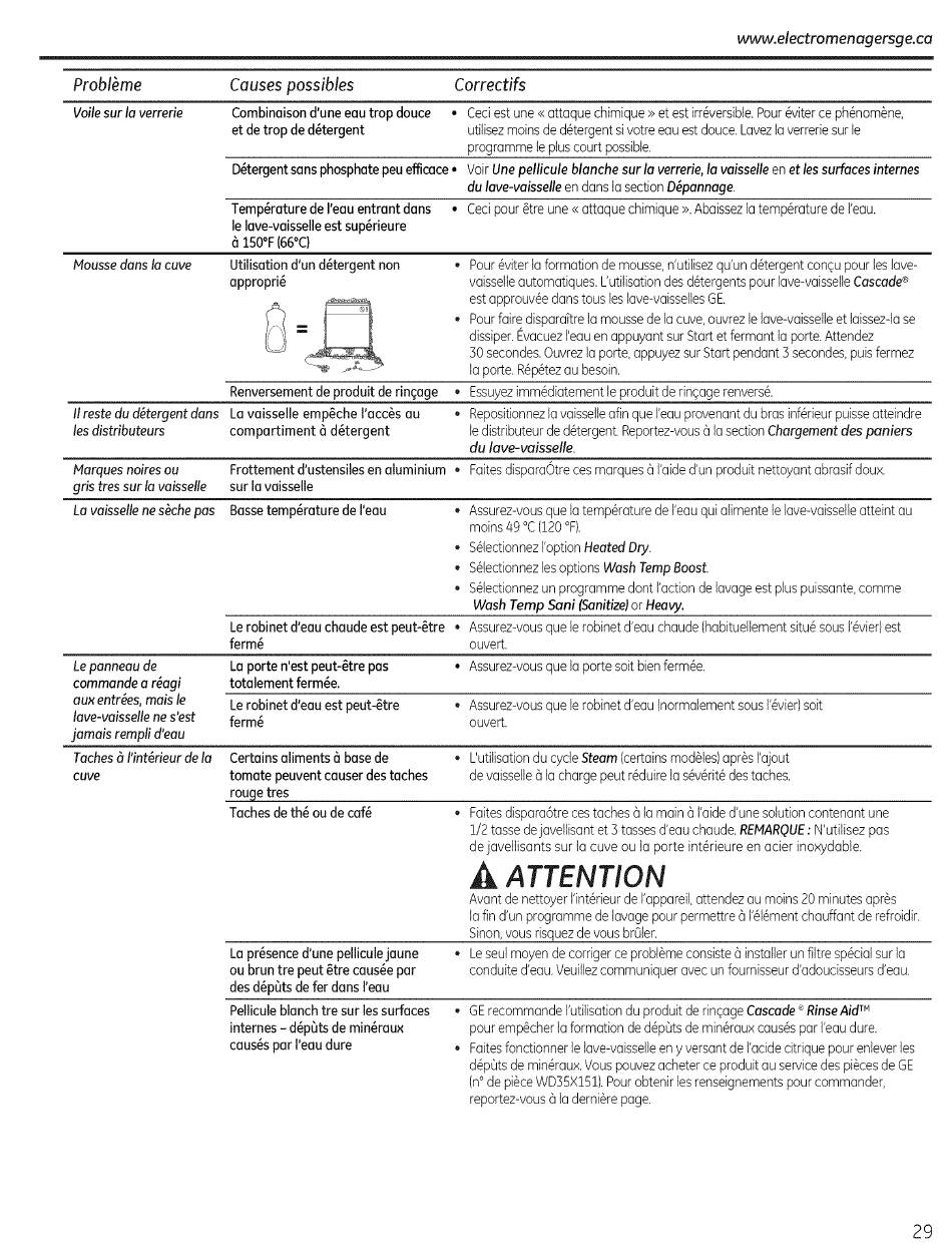 vaisseite automatiques.L'utiiisationdesd6tergentspour lave-vaisseiie Cascade ®