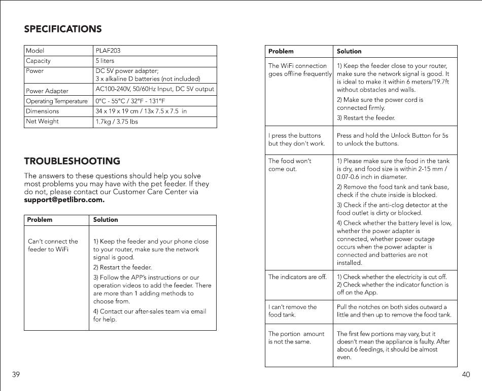 most problems you may have with the pet feeder. f they