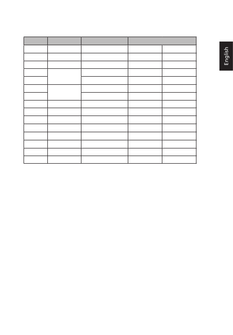 Standard timing table