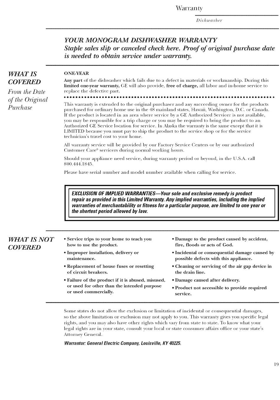 Warrantor: General Electric Company, Louisville,