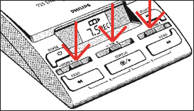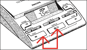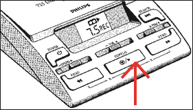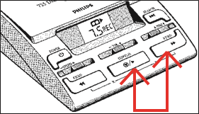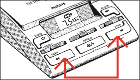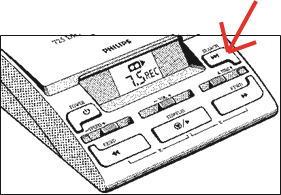 The SEARCH key (10) has three different functions which make it particularly easy to move to any specific piece of dictation on a cassette. The LCD display shows you that a search function is in progress by displaying the search symbol (the wind arrows together with a vertical line).