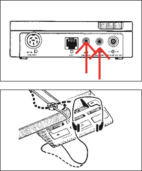 Plug the connector into the microphone socket at the back of the machine and route the cable as shown in the recesses underneath the microphone holder.