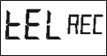 Shows that recording is made using a telephone coupler or external microphone. The word tEL is shown alternating with the tape counter.