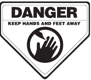 | Whole body exposure to thrown objects | Severing of fingers and toes | Do not open or remove safety shields while engine is running | Careful backing up, watch for other people | Careful going forward, watch for other people | |