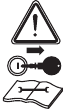 | Warning! | Use protective glasses | Parking Brake | Use protective gloves | Do not stand here | |