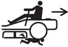 | Moving sharp blades under cover | Shut off engine and remove key before performing any maintenance or repair work | Keep a safe distance from the machine | Use on slopes no greater than 10° | No passengers | |
