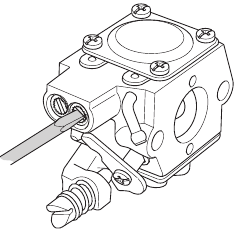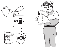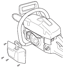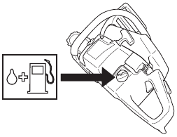 | Check the saw chain with regard to visible cracks in the rivets and links, whether the saw chain is stiff or whether the rivets and links are abnormally worn. Replace if necessary. | Clean or replace the spark arrestor screen on the muffler. | Empty the fuel tank and clean the inside. |