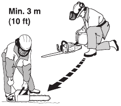 Use caution when handling fuel. Move the chain saw at least 10 feet (3 m) from the fueling point before starting the engine.