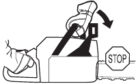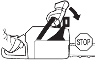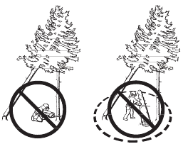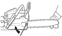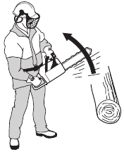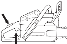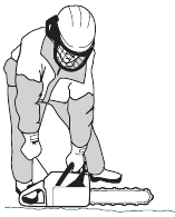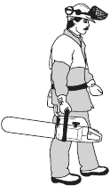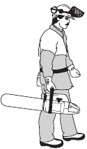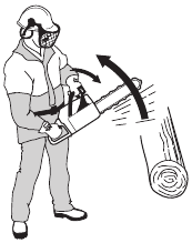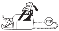 There are also certain positions in which your hand cannot reach the front hand guard to activate the chain brake; for example, when the saw chain is held in felling position.