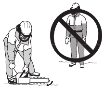 Do not allow other persons to be near the chain saw when starting or cutting with the chain saw. Keep bystanders and animals out of the work area.