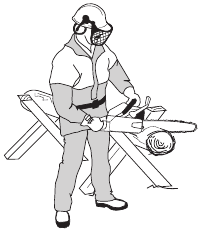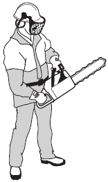 | Never operate a chain saw holding it with one hand only. | ![]() | |