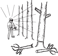 When cutting a limb that is under tension be alert for springback so that you will not be struck when the tension in the wood fibers is released.