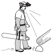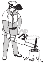 Make sure that the area in which you are cutting is free from obstacles. Do not let the nose of the guide bar contact a log, branch, or any other obstacle which could be hit while you are operating the saw.
