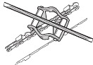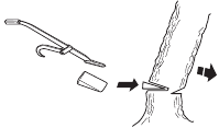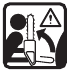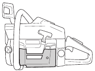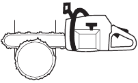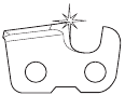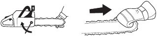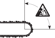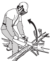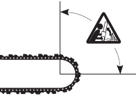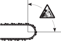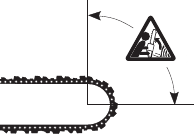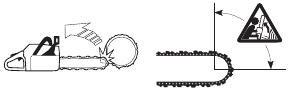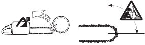 | Tip contact may cause the guide bar to move suddenly upward and backward (so-called kickback), which may cause serious injury. | ![]() | |
