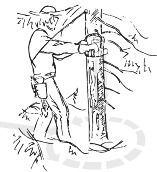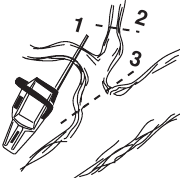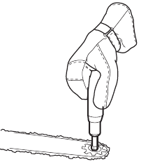 | Contact of the guide bar tip with any object must be avoided. | ![]() | |