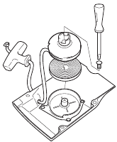 | Check that the components of the throttle control work safely. (Throttle lockout and throttle control.) | Check the starter, starter cord and return spring. | Check the clutch centre, clutch drum and clutch spring for wear. |